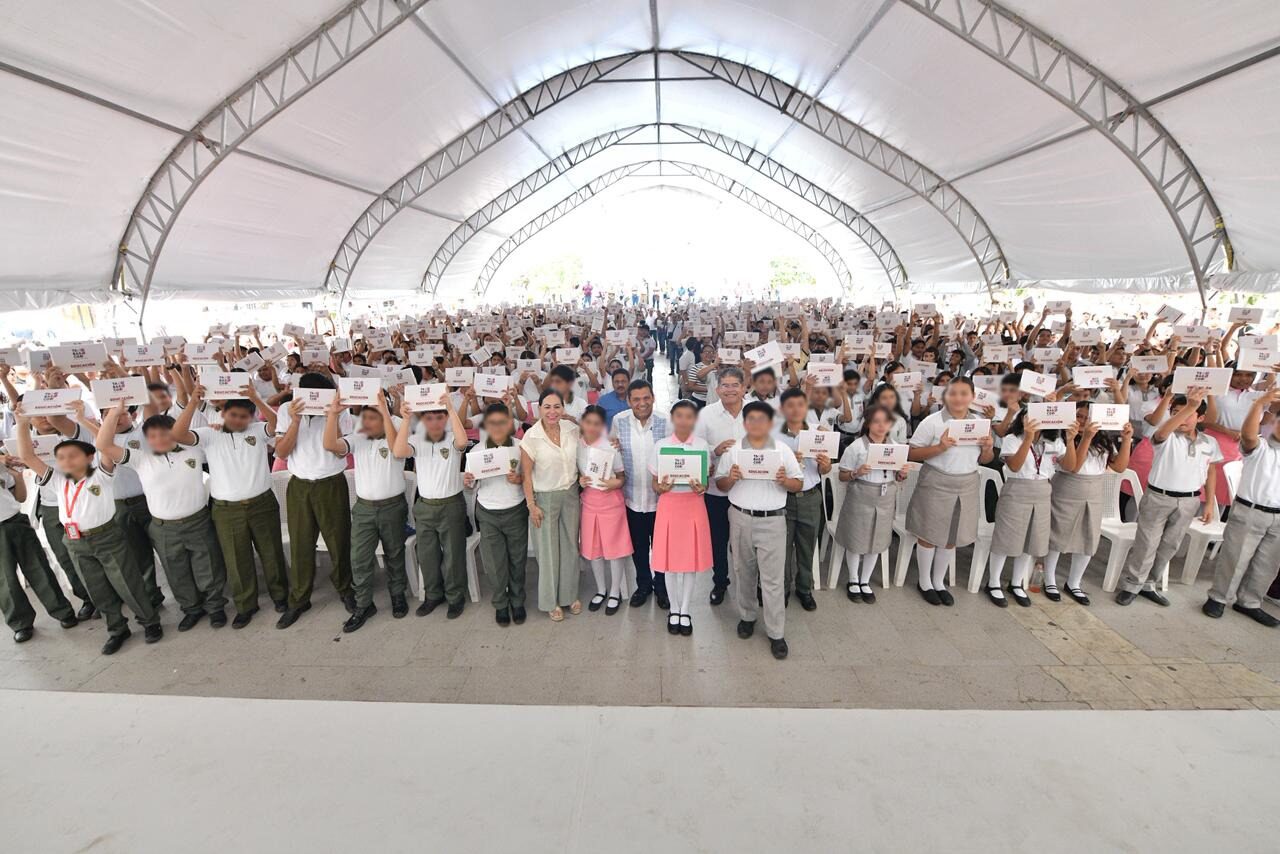 En compañía de la secretaria de Educación, Patricia Iparrea Sánchez, y el alcalde Alfonso Jesús Baca Sevilla, el jefe del Ejecutivo llevó a cabo, en Paraíso, la entrega de los dispositivos, que en esta demarcación costera alcanzarán a mil 565 alumnos de 14 instituciones educativas.