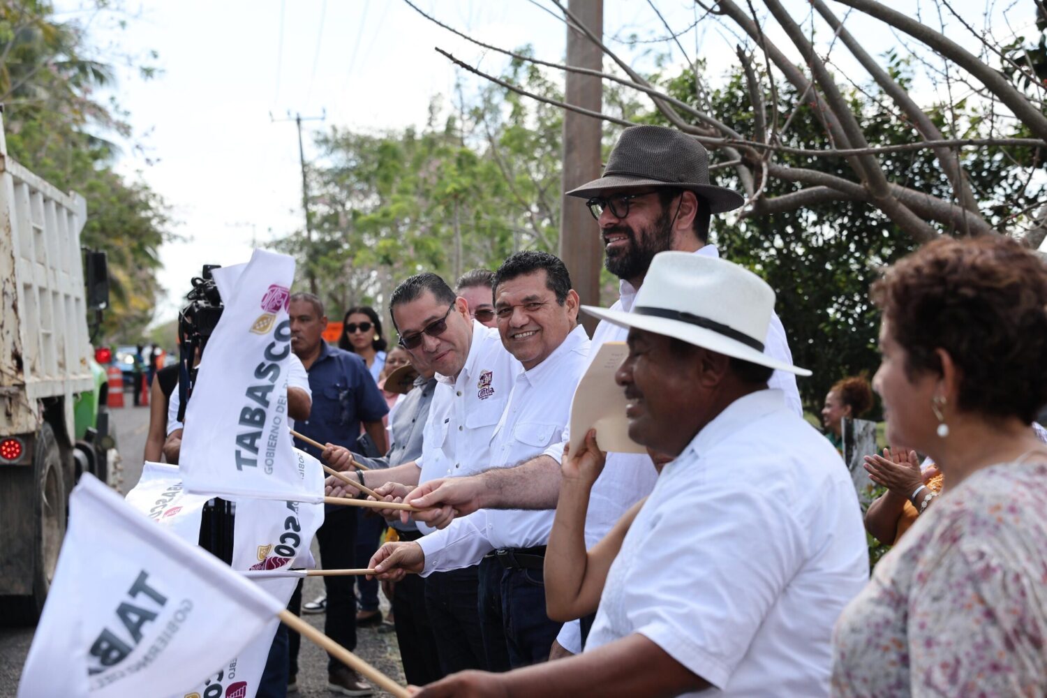 En aras de seguir modernizando y rehabilitando la carretera Frontera-Jonuta, una vía estratégica para que sus habitantes movilicen su producción, el Gobernador Javier May Rodríguez dio el banderazo de inicio de la pavimentación de 2.05 kilómetros del tramo Frontera-La Tijera, en la que el Gobierno del Pueblo invierte 12 millones de pesos.