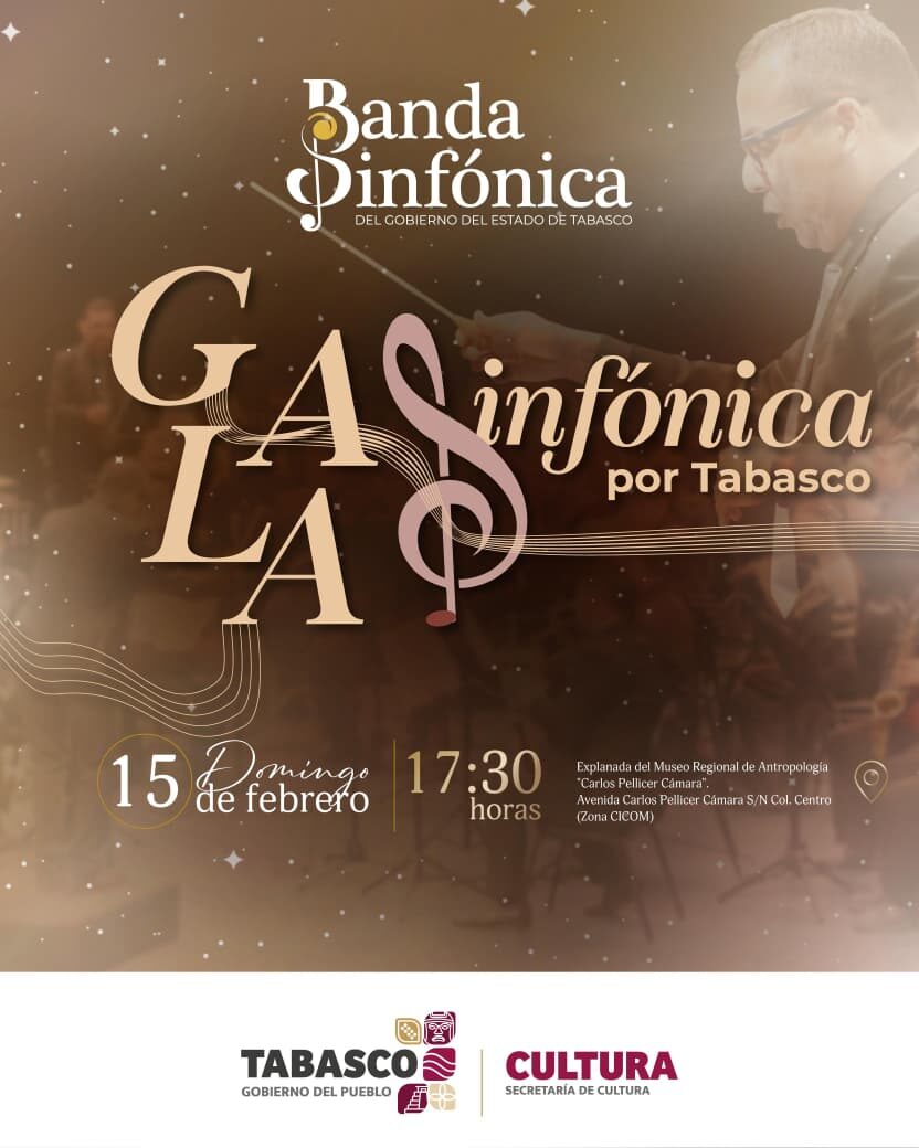 La Banda Sinfónica del Gobierno del Estado de Tabasco presentará la Gala Sinfónica por Tabasco, un concierto especial con el que se busca resaltar la identidad y el orgullo cultural de la entidad a través de la música.