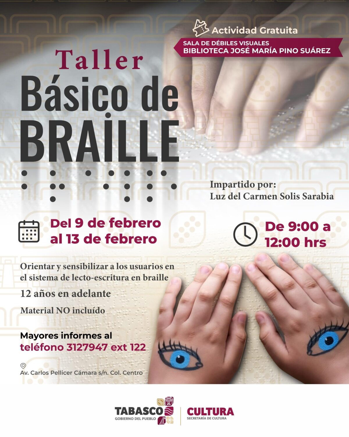 El taller se llevará a cabo del 9 al 13 de febrero, en un horario de 9:00 a 12:00 horas, y tiene como finalidad orientar a las y los participantes en el sistema de lecto-escritura en braille, como una herramienta fundamental para la inclusión de personas con discapacidad visual.