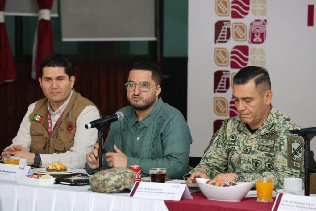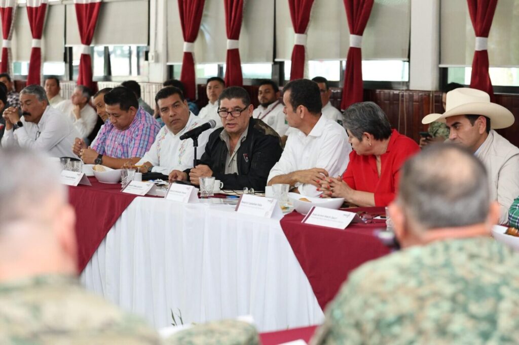 Junto al comandante de la 38° Zona Militar, Antonio Ramírez Escobedo y acompañado del secretario de Seguridad y Protección Ciudadana, Serafín Tadeo Lazacano, expresó que la estrategia conjunta solo tendrá resultados si se efectúa con apoyo mutuo y mucha coordinación.