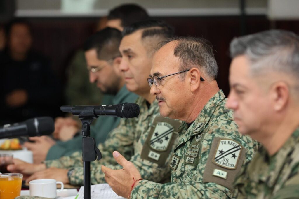 En la sede del 38° Zona Militar en Tenosique, integrantes de los gabinetes de seguridad de los dos estados, ediles y autoridades federales intercambiaron puntos de vista sobre la coordinación para generar resultados más efectivos a favor de la ciudadanía.
