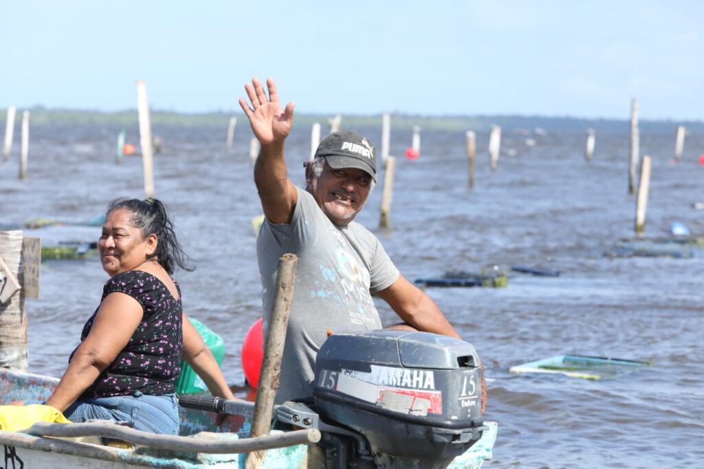 Algunos, como los de la Comunidad de Aprendizaje Acuícola “Perlas Ostioneras” rompían con su grito el ronroneo de los motores y expresaban a la distancia, pero en la cercanía de un sentimiento, su agradecimiento. En la misma lancha del mandatario también iban los subsecretarios de Desarrollo Agrícola y Ganadería, Joaquín Alejandro Ligonio, y el de Pesca y Acuacultura, Guillermo Priego León.