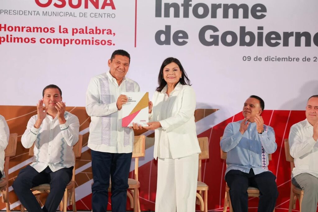 • La alcaldesa de Centro presentó su Primer Informe de Gobierno 2024-2027 ante el Cabildo, el gobernador Javier May Rodríguez y autoridades de los tres órdenes de gobierno
