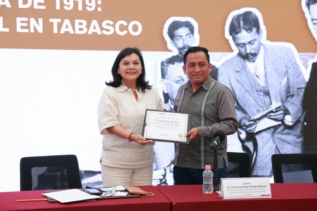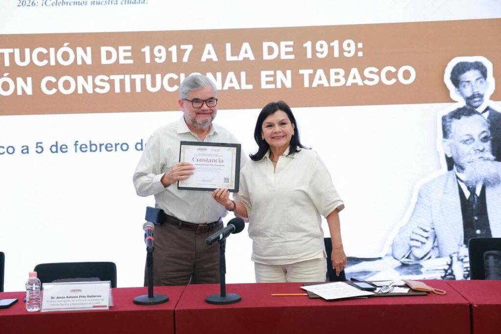 La alcaldesa agradeció la participación de los investigadores Carlos Domingo Méndez Moreno, de la Universidad Michoacana de San Nicolás de Hidalgo, y Jesús Antonio Piña Gutiérrez, de la Universidad Juárez Autónoma de Tabasco, a quienes entregó reconocimientos. Consideró que este panel de reflexión se inscribe en una coyuntura especialmente significativa para la capital tabasqueña.