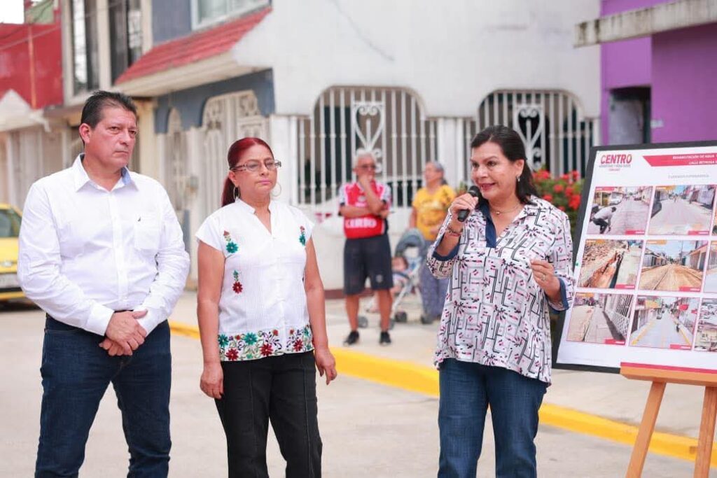 Villahermosa, Tab., 29 de septiembre de 2025.- Con hechos y cumpliendo un compromiso más, la alcaldesa Yolanda Osuna Huerta entregó la rehabilitación integral de la calle Reynosa, en el fraccionamiento Pagés Llergo. Los trabajos incluyeron drenaje sanitario, tomas domiciliarias de agua potable, pavimentación con concreto hidráulico, guarniciones y banquetas. La presidenta municipal destacó que los vecinos ahora cuentan con tuberías nuevas para el drenaje sanitario y agua potable conectada de forma individual a cada vivienda, atendiendo rezagos históricos y cumpliendo una demanda largamente esperada. Ante las familias reunidas, Osuna Huerta mostró el contraste entre el estado anterior y la transformación actual de esta vía, ubicada entre las calles Villahermosa y Comalcalco, subrayando el impacto positivo en la salud pública de la comunidad. Precisó que su gobierno trabaja de manera sistemática para garantizar el bienestar de la población, en coordinación con los gobiernos federal y estatal, porque la suma de esfuerzos potencia los resultados. “Seguiremos en actividad permanente de servicio, con honestidad y resultados”, afirmó la alcaldesa, acompañada de la delegada municipal, Marbella Ramírez Magaña. En cuanto a los detalles técnicos, el coordinador del Sistema de Agua y Saneamiento (SAS), Alfredo Villaseñor Negrete, informó que se colocó tubería de distintos diámetros para el drenaje sanitario, además de conexiones domiciliarias y registros correspondientes. Añadió que también se realizaron conexiones de agua potable, instalación de rejilla pluvial y la pavimentación con concreto hidráulico, guarniciones y banquetas en una superficie de 1,037 metros cuadrados, con una inversión aproximada de 1 millón 850 mil pesos.