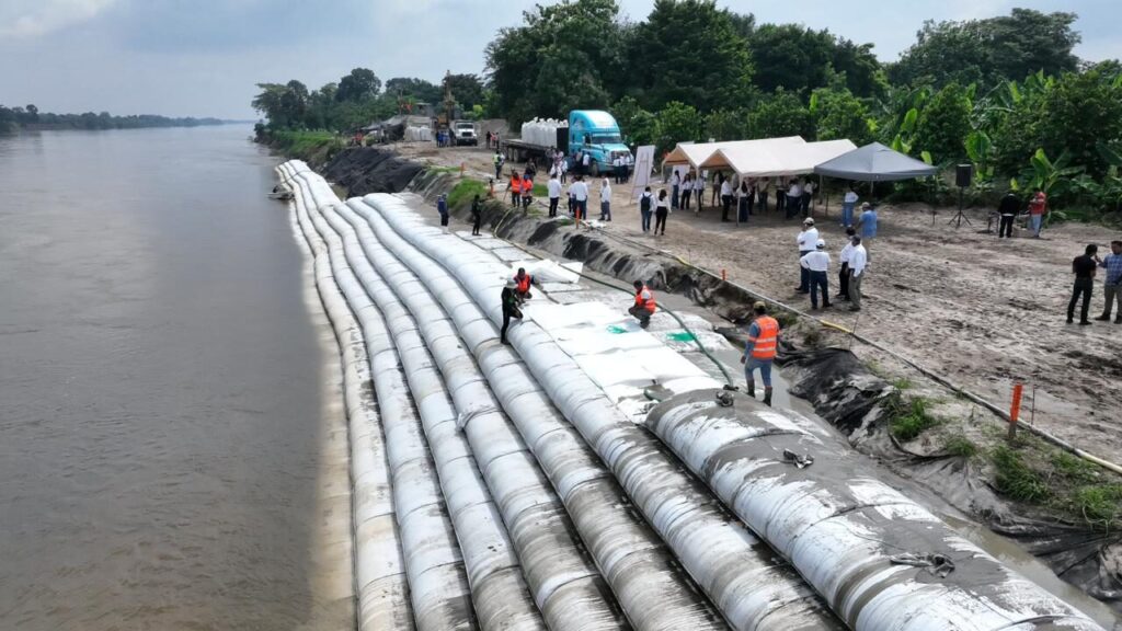 De acuerdo con las especificaciones técnicas, la obra considera la construcción de protección marginal con bolsa de cimbra textil a lo largo de 220 metros. “Creemos que, a mediados del mes de noviembre, estaríamos terminando esta obra”, informó el director local de la Conagua en Tabasco, Luis Antonio Cabrera, al participar en el recorrido, al que también acudieron los titulares de la Secretaría de Ordenamiento Territorial y Obras Públicas, Daniel Casasús Ruz; del Instituto de Protección Civil del Estado, Armando Pulido Pardo; y de la Comisión Estatal de Agua y Saneamiento, Miren Eukene Vicente Ertze.