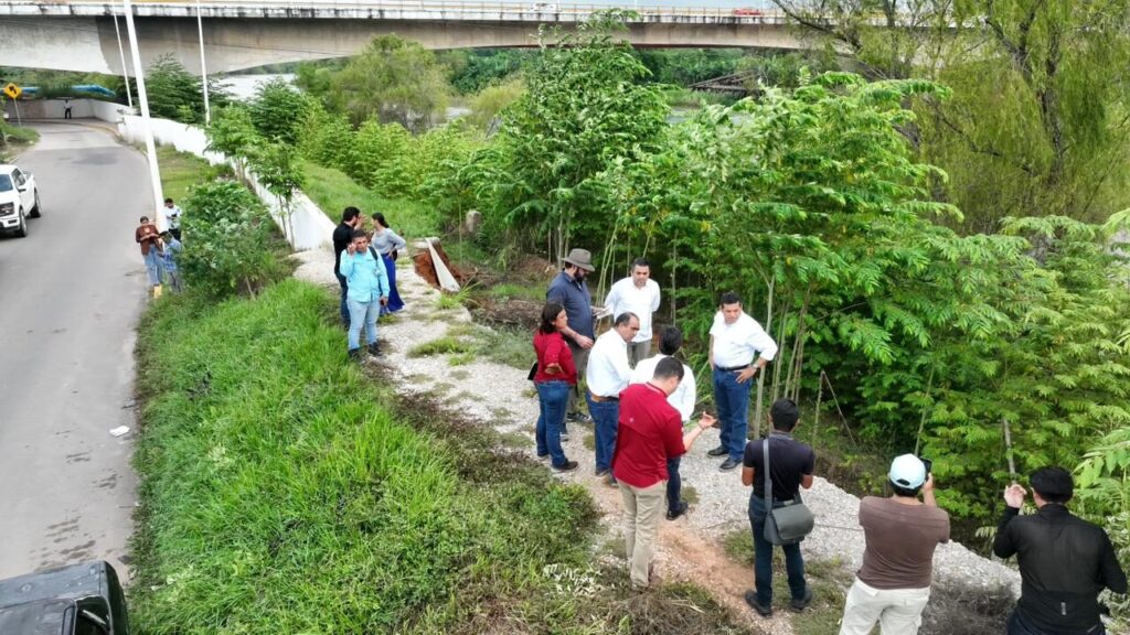 Seguidamente, acudieron a la colonia Gaviotas Norte de Villahermosa, donde supervisaron el bordo de protección en la margen derecha del río Grijalva.