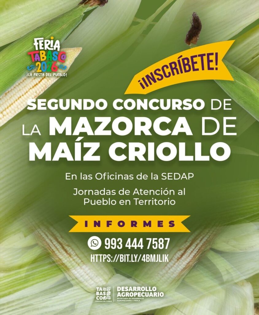 El Gobierno del Estado de Tabasco, a través de la Secretaría de Desarrollo Agropecuario y Pesca (SEDAP), recuerda a las y los productores tabasqueños que continúan abiertas las convocatorias para participar en los concursos “Orgullo del Campo”, que se llevarán a cabo en el marco de la Feria Tabasco 2026.