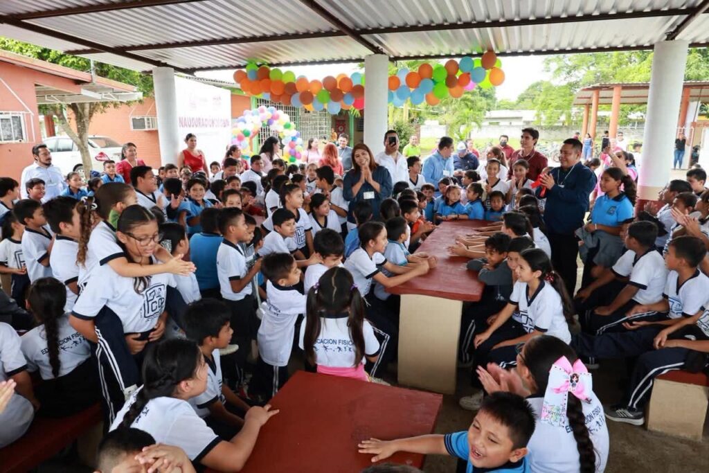 Huimanguillo, Tabasco; a 15 de octubre del 2025.- “Me siento muy contenta de poder contribuir con un granito de arena para que las niñas y los niños cuenten con este nuevo y digno espacio”, expresó la presidenta municipal de Huimanguillo, Mari Luz Velázquez Jiménez, al inaugurar el desayunador escolar en la Primaria Federal Pedro C. Colorado, del poblado C-26.