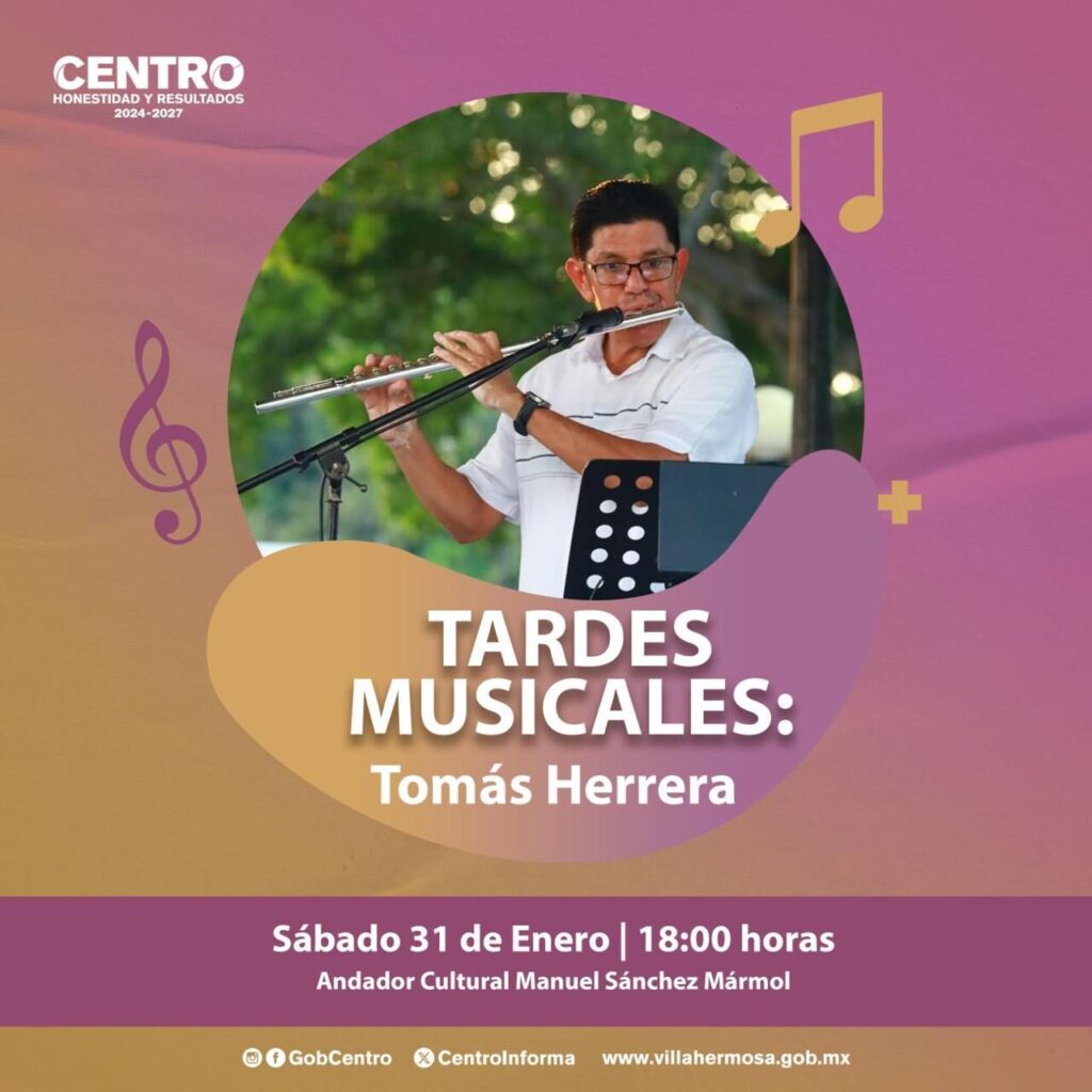 Asimismo, el jueves 29 de enero, a las 18:00 horas, el Andador Cultural Manuel Sánchez Mármol será escenario de “Al ritmo de…”. En este mismo espacio, el viernes 30 de enero se realizará “Todos a cantar”, y el sábado 31 de enero, a partir de las 18:00 horas, se presentará Tomás Herrera en “Tardes musicales”.