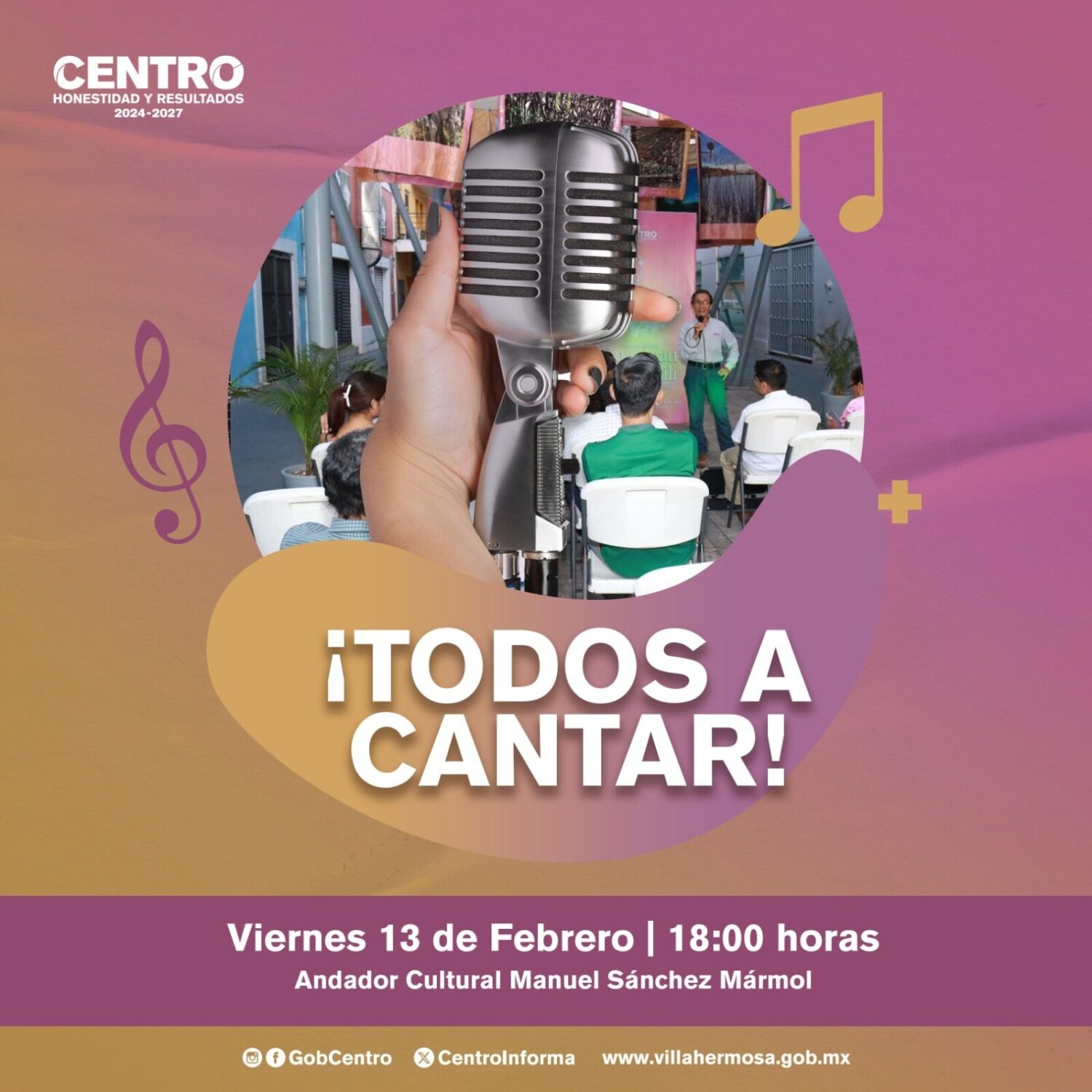De manera simultánea, el viernes a las 18:00 horas, el Andador Cultural Manuel Sánchez Mármol será sede del karaoke ¡Todos a cantar!, como una opción más de entretenimiento para el público.
