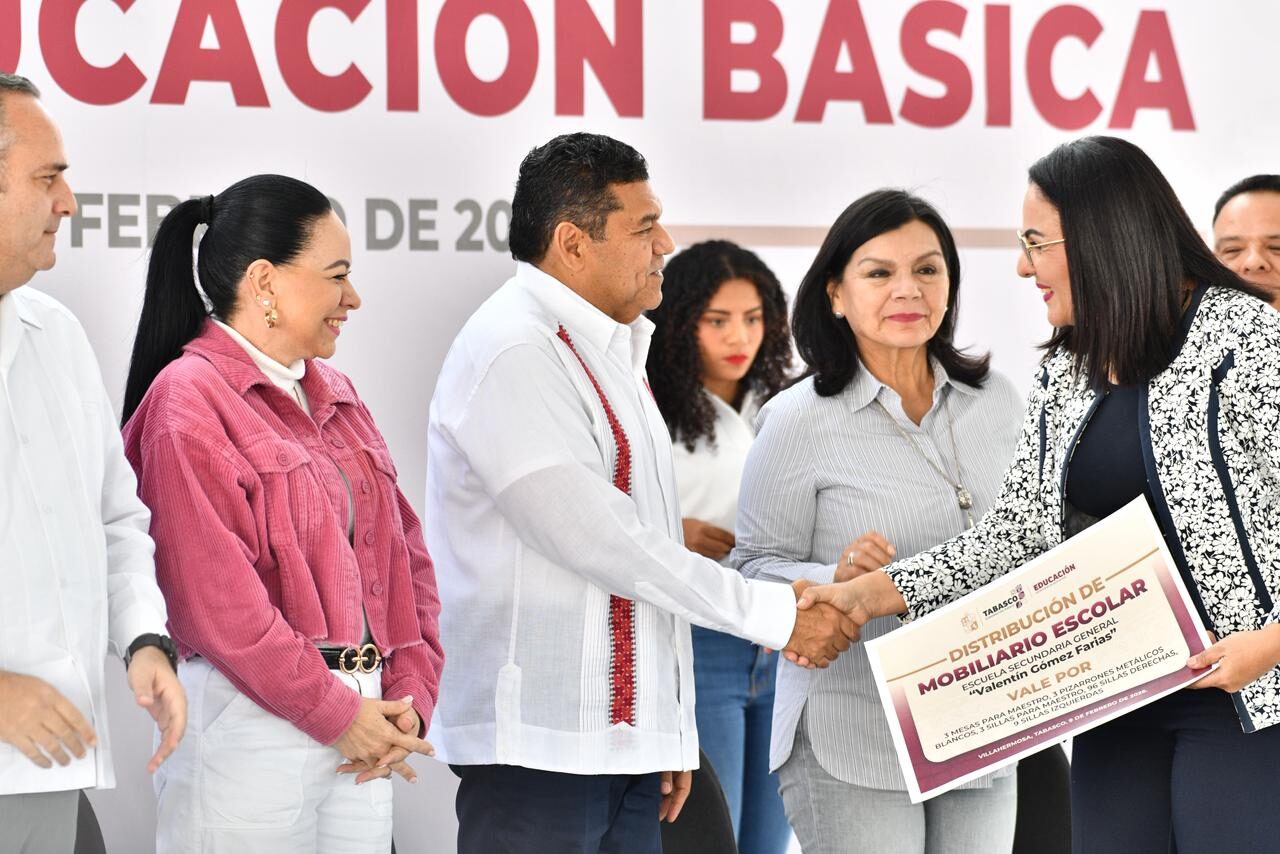 “Cada pupitre, cada mesa y cada silla que hoy se entregan, representan un acto de justicia educativa y una apuesta por la igualdad de oportunidades. En Tabasco, nuestro Gobernador impulsa una política educativa que entiende que invertir en educación, es invertir en el desarrollo humano, en la cohesión social y en el futuro del Estado”, subrayó.