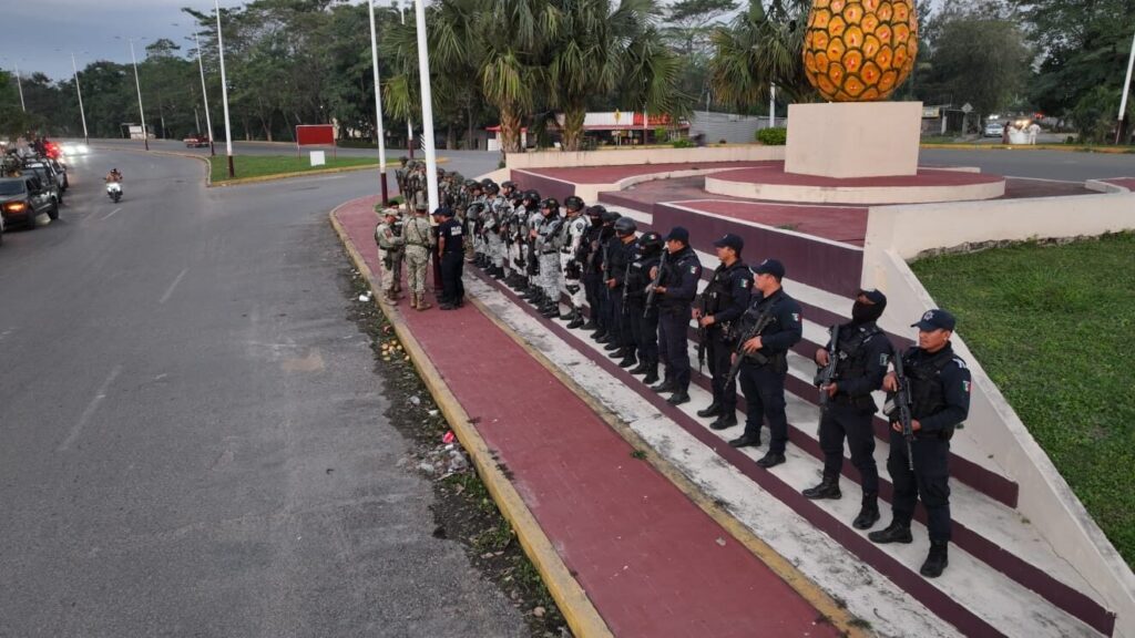 Para garantizar la integridad de las familias, elementos del Ejército Mexicano, Guardia Nacional y Policía Municipal, desplegaron este domingo un operativo de vigilancia y revisión en distintos puntos del municipio de Huimanguillo.