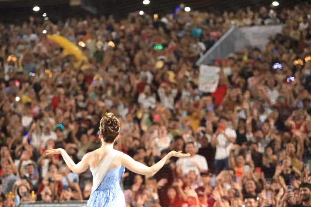 En un estadio abarrotado, la teapaneca expresó su gratitud a Tabasco y a su gente, “porque su amor le llenan el corazón y le dan fortaleza para seguir su camino. Nunca olvidaré mis raíces y de dónde vengo. A donde quiera que voy, me llevo el cariño de mi gente, de mi familia y de mis paisanos”, subrayó en el punto más emotivo del evento.