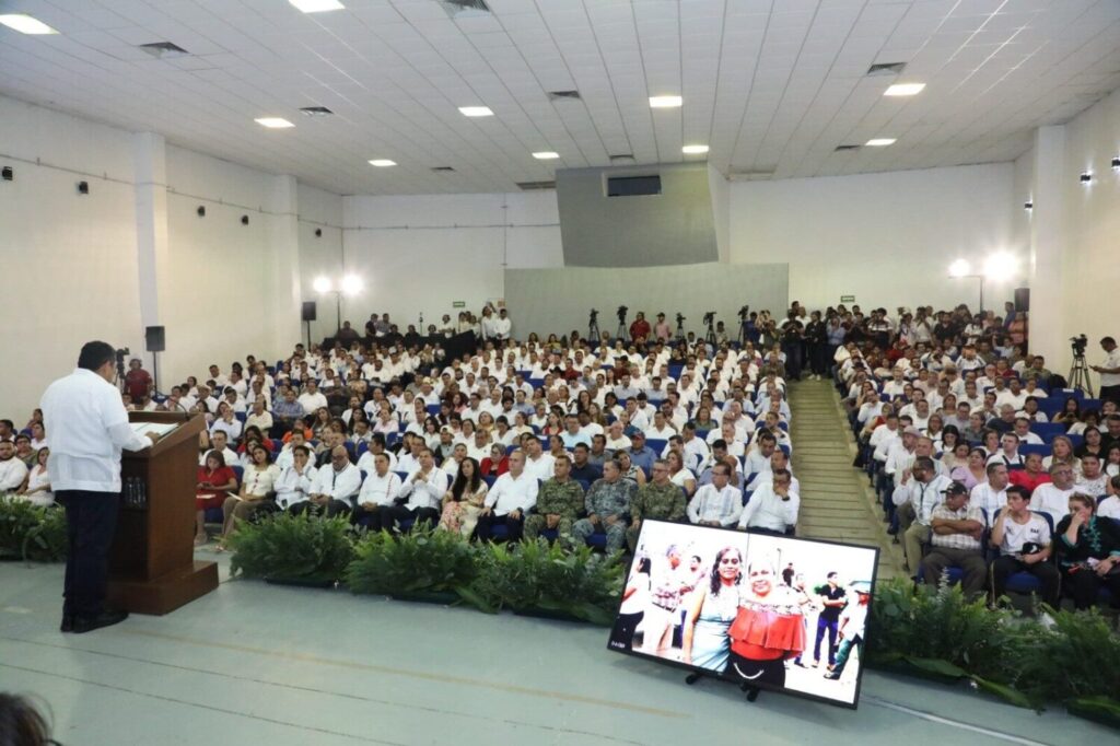 Ante beneficiarios de los programas productivos y de bienestar, integrantes del Gabinete estatal, representantes de los poderes Legislativo y Judicial, presidentas y presidentes municipales, empresarios, diputados federales, y servidores públicos del Gobierno de México, el mandatario convocó a las y los tabasqueños a mantener la unidad, bajo la premisa de que la transformación es una obra colectiva, y aseveró que su administración seguirá trabajando desde el territorio, con austeridad y siempre cerca de la gente.